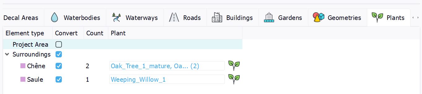 - Plant : One or several Plant document(s) to place as instances in the scene. Please note that if the Plant document selected here is a Store documents, you won't be able to modify it once it is instanced in your 3D scene.