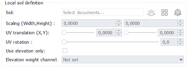 - Elevation Weight Channel: Set a soil channel to use as a fading weight for the elevation. This parameter is mainly used for automatically generated geometry ground decals, see Geometries for more info on geometry decals.