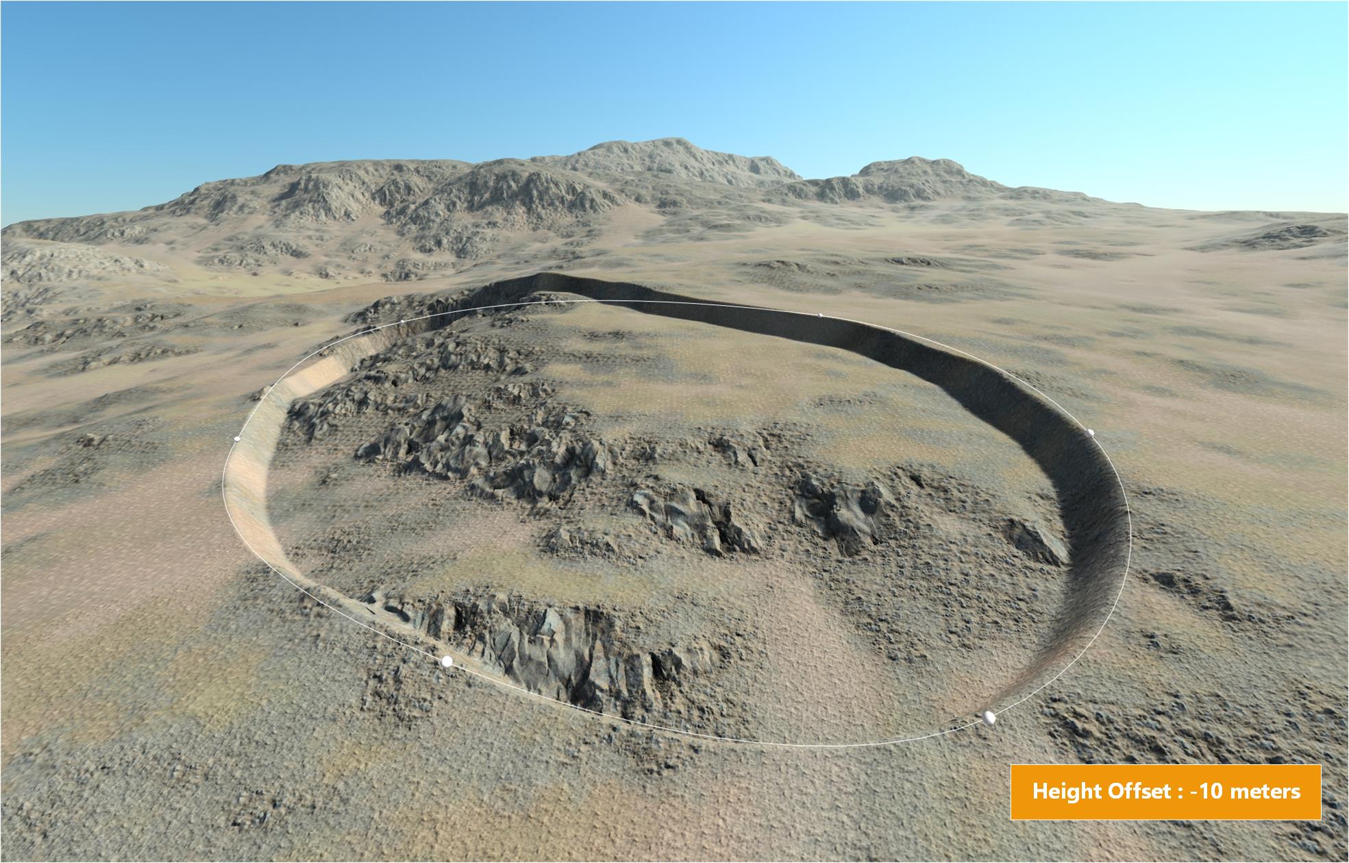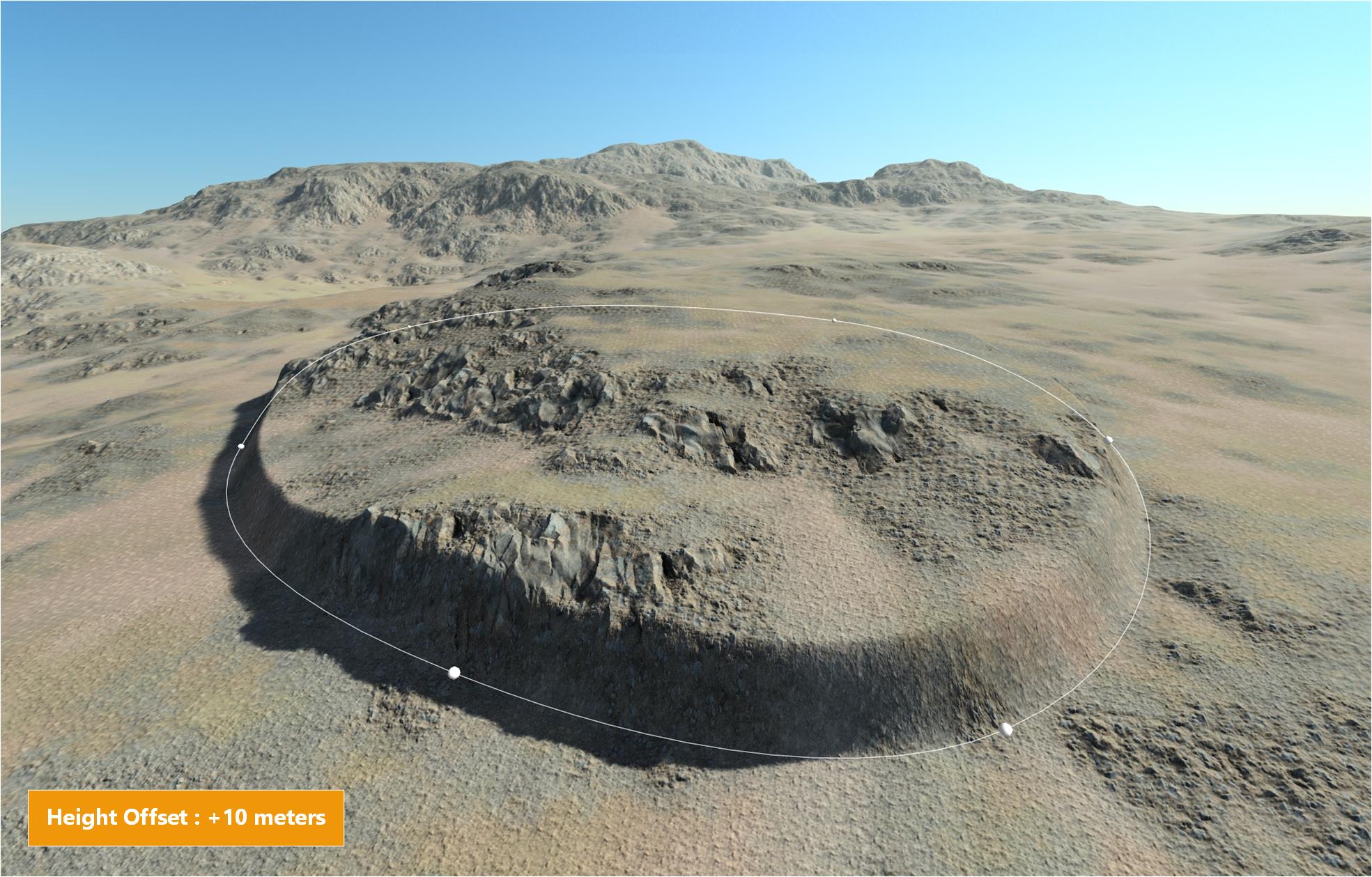 Height offset (m) : an elavation offset in meters used to elevate or dig the ground inside the decal area. The positive values will add elevation to the ground, while the negative values will dig the ground.