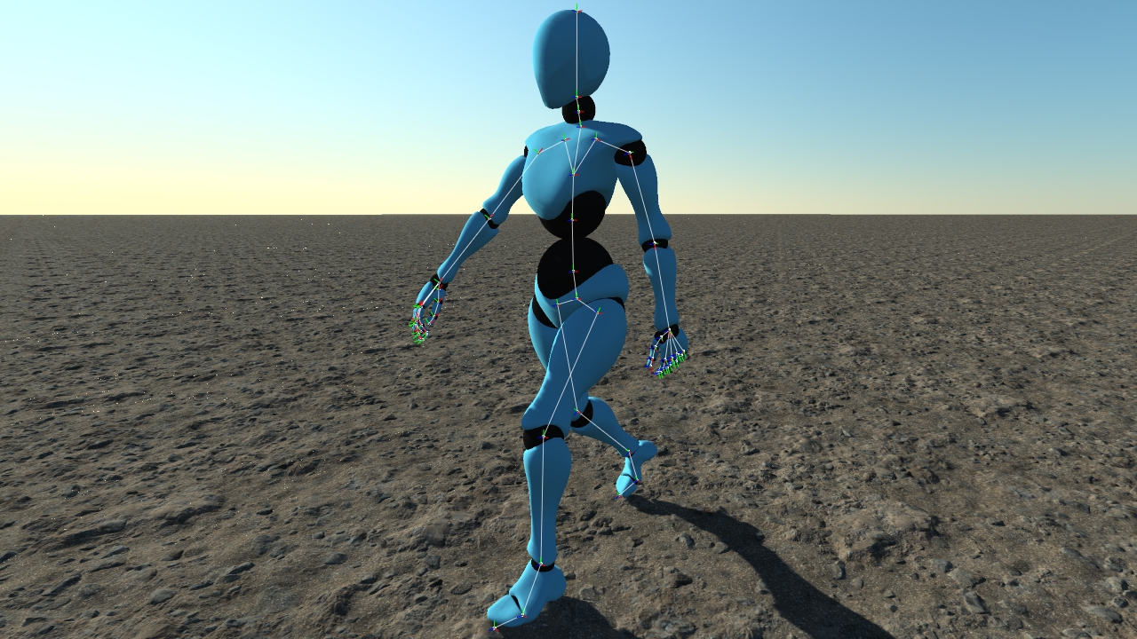 A geometry can be animated with a skeletal animation. The skeleton and animation must be created with dedicated softwares outside NDunes and can be loaded from a .fbx file.