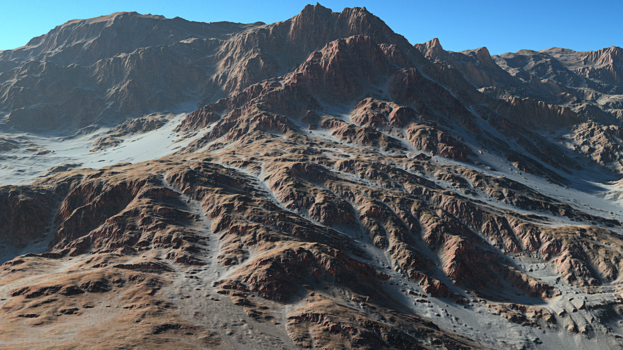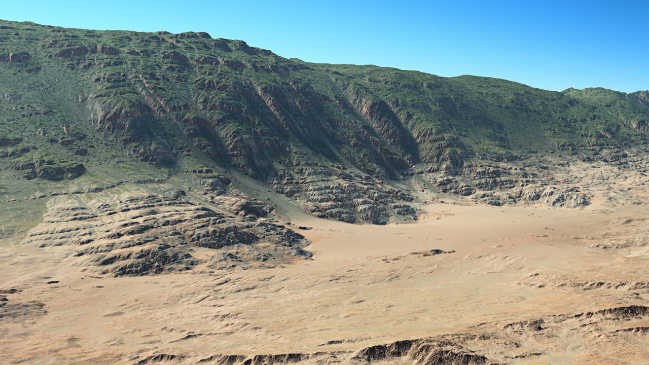 In the image below we see the frontier between a desert and a savannah style biome where it gets too hot in the valley and some plants have been setup to survive in bit less warm regions. Flow maps break the temperature and rainfall lines that would be visible otherwise: