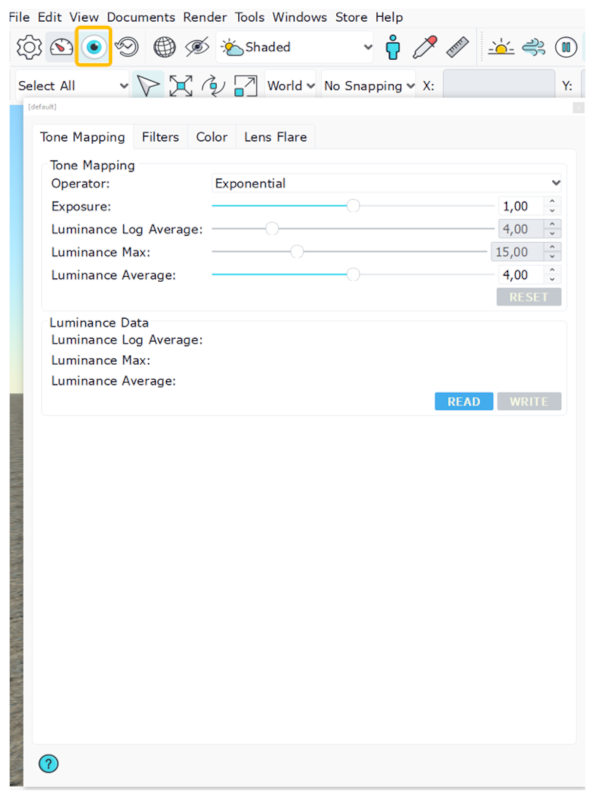The Tonemapping tool is a set of parameters that will modify the image on the camera, changing the contrast, brightness, adding filters and vignettes. You can use it to the exposure, add filters, change the color balance or the Lens Flare. It can quickly increase the visuals in your Scene before rendering as it can greatly change the images that will be rendered.